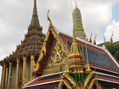 飞机直达曼谷,这里的大皇宫,汇集了泰国建筑、绘画、雕刻和装潢艺术的精粹,还有一座玉佛寺与大皇宫相邻,是全泰国唯一没有僧侣主持的佛寺,但供奉着一座价值连城的国宝—玉佛,该玉佛是由整块翡翠雕成的,非常的气派。傍晚大伙儿一起载船游了湄南河,欣赏着两岸美丽的风光,我们的心灵得到了真正的放松。