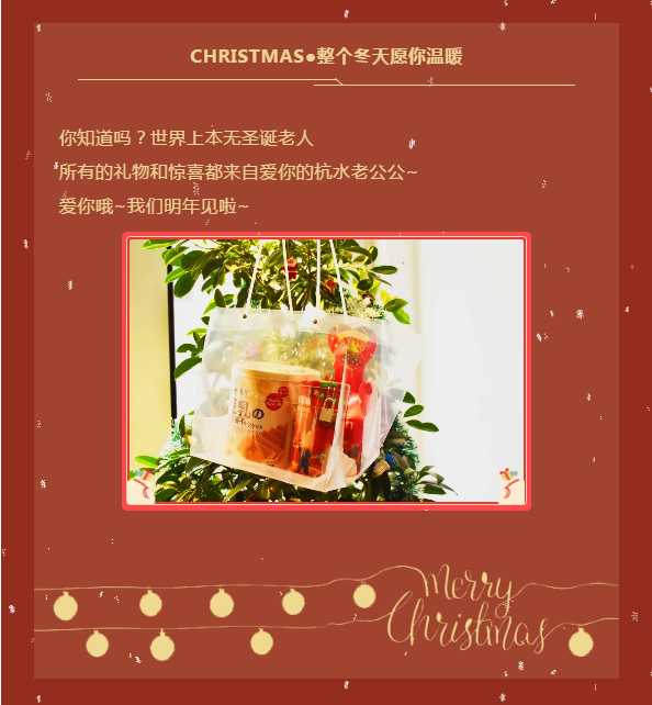 噔噔噔~亲爱的杭水小宝贝,你的礼物和一整年的幸福快乐已由杭水老公公送达,请注意签收~