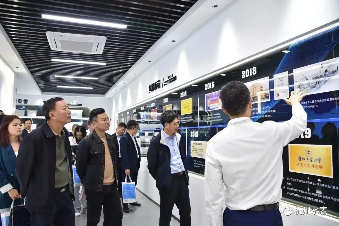 Subsequently, accompanied by Chairman Liu Jian and Vice General Manager Xu Lun, the attending guests visited the "Hangzhou Water Impression" multimedia exhibition hall, the remote transmission water meter intelligent manufacturing workshop, the large meter calibration workshop, and the "two inspections in one" laboratory. They also visited the production lines of automatic patch mounting, automatic assembly, automatic glue filling, and automatic calibration processes in detail. The guests highly praised the company's scientific research capabilities, lean manufacturing, and fine management, It also further enhances the confidence and determination to deepen cooperation.