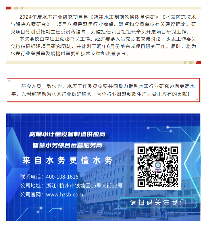 中国计量协会水表工作委员会2024年水表行业研究项目筹备会议顺利在杭召开