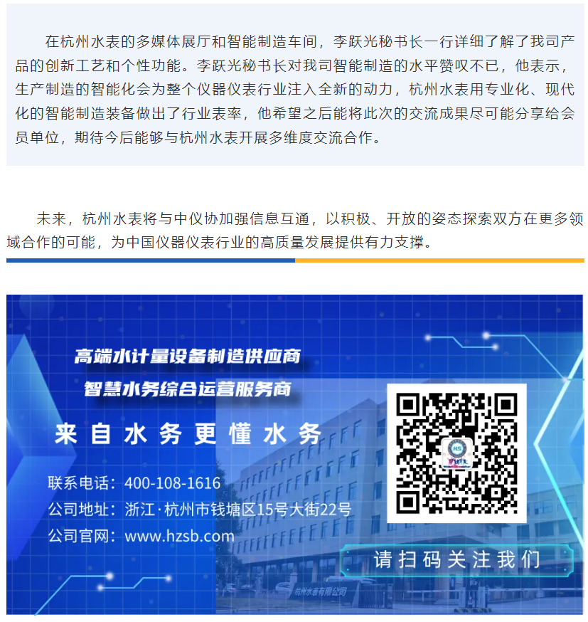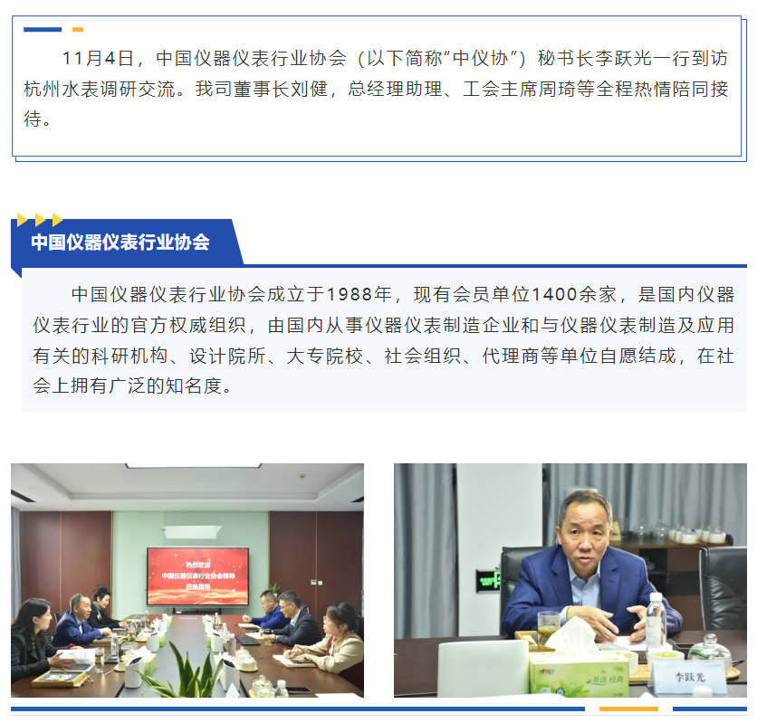 中国仪器仪表行业协会秘书长李跃光一行莅临杭州水表调研交流