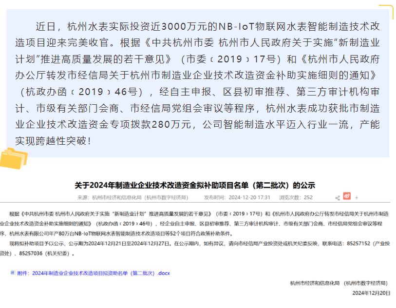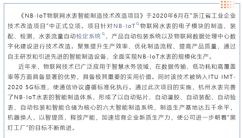 获280万元专项拨款!杭州水表NB-IoT物联网水表智能制造技改项目成功通过验收